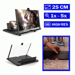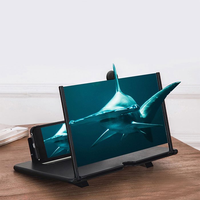 A 9,8 hüvelykes mobiltelefon képernyőnagyító fizikai optikai technológiát használ a képek, videók és egyéb fájlok kivetítésére. A nagyító a telefontól az objektívig terjedő képet a 3-5-szeresére növeli.