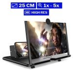 A 9,8 hüvelykes mobiltelefon képernyőnagyító fizikai optikai technológiát használ a képek, videók és egyéb fájlok kivetítésére. A nagyító a telefontól az objektívig terjedő képet a 3-5-szeresére növeli.