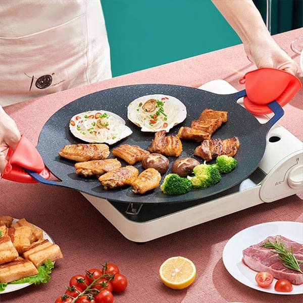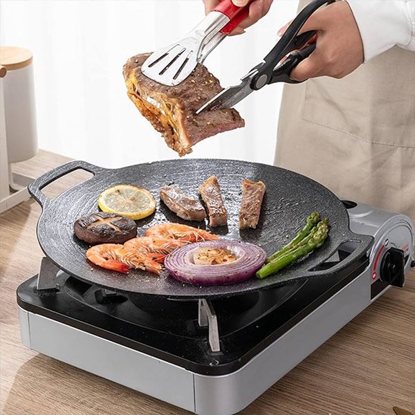 A koreai kerek grillserpenyőnk egyenletes hőelosztást biztosít, így garantáltan tökéletesen elkészített ételek minden alkalommal.