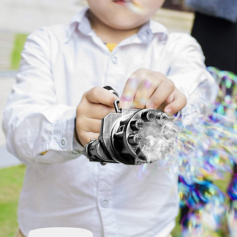 Nagyon könnyen használható, csak helyezze be az elemeket, töltse fel a buborékfolyadékot, húzza meg a ravaszt, és szórakozzon a buborékok lövöldözésével.