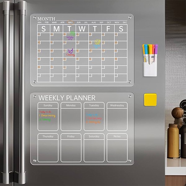 Nyomon követheti a fontos dátumokat és időpontokat a mágneses naptárunkkal, amely könnyen tapad a hűtőszekrényére vagy bármely más mágneses felületre.