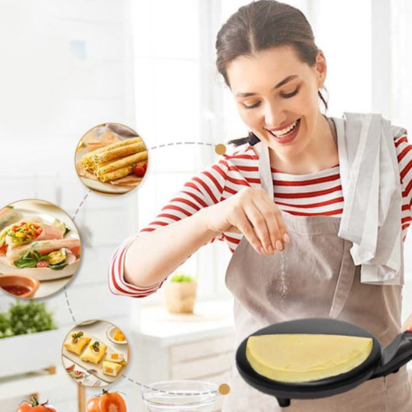A serpenyő a palacsinta elkészítése mellett más ételek, például tortilla elkészítésére is használható. A lehetőségek végtelenek! A palacsinta és egyéb ételek elkészítése egyszerű és gyors, így rengeteg időt takarít meg!