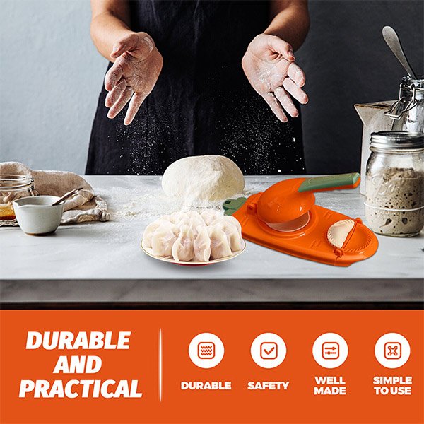 A sodrófa 2 funkciót kínál 1 termékben – tésztagolyót sodor és jól is néz ki! Helyezze a tésztát a formába és a fogantyú megnyomásával formálja meg. A tészta vastagsága a nyomás erejével is szabályozható. Ezután a tésztába tesszük kedvenc töltelékeinket, majd összehajtogatjuk és a készülékkel lezárjuk.