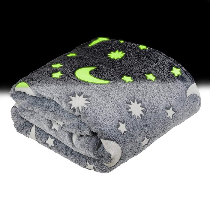 A takaró gyönyörű fényt sugároz az éjszaka során. Mindössze annyi a teendője, hogy nappal a nappali fényben tartja, ennek következtében, éjszaka gyönyörű ragyogásba kezd. Bőrbarát anyagokból készült, meleget és biztonságérzetet nyújt a gyermekének.