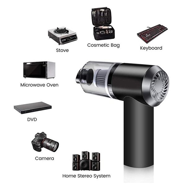Szívóereje elég erős ahhoz, hogy minden ételmaradékot, porszemcsét és háziállatszőrt egy pillanat alatt felszívjon. Használhatja autója, elektronikai eszközök, bútorporszívó, háziállatszőr, irodai íróasztalok és így tovább tisztítására.