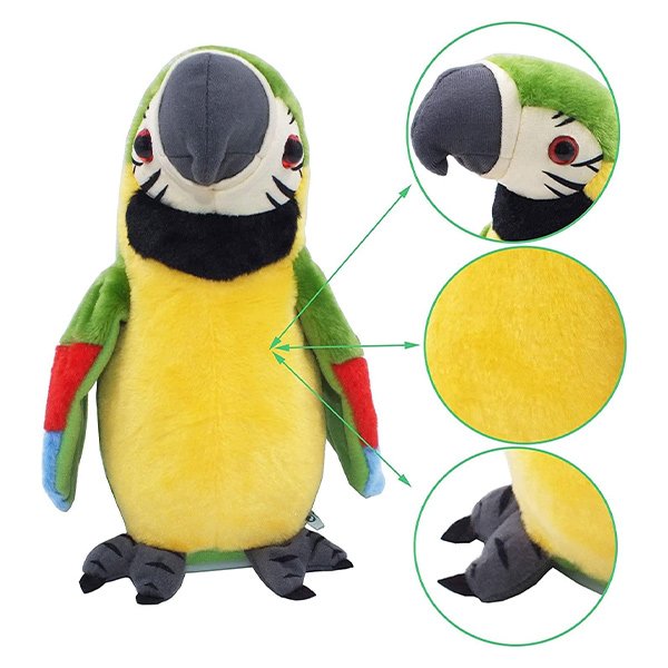 Kiváló minőségű, ultra puha anyagokból készült plüss beszélő papagájunk nem csak rendkívül simogatható, hanem biztonságos is a gyermekek számára. Ez a tökéletes ölelkező társ játékidőben és alvásidőben.