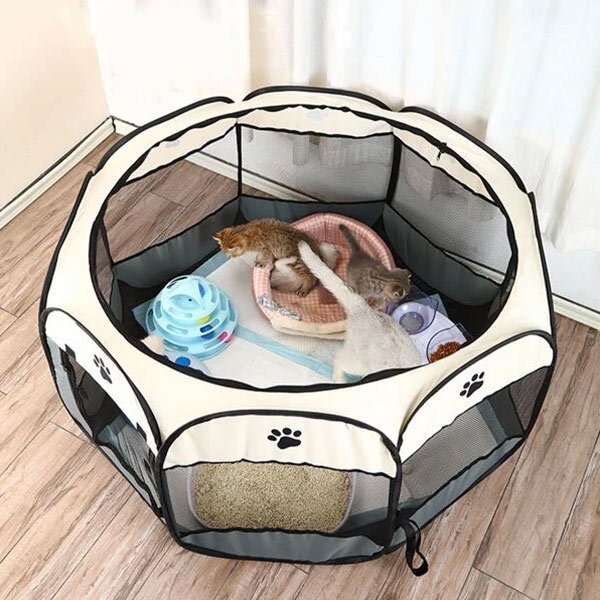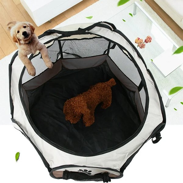 Hordozható, összecsukható házikedvenc játszótérünk könnyű szállítást tesz lehetővé és beltéren és szabadtéren egyaránt használható, biztonságos és megbízható teret biztosítva kedvence számára.
