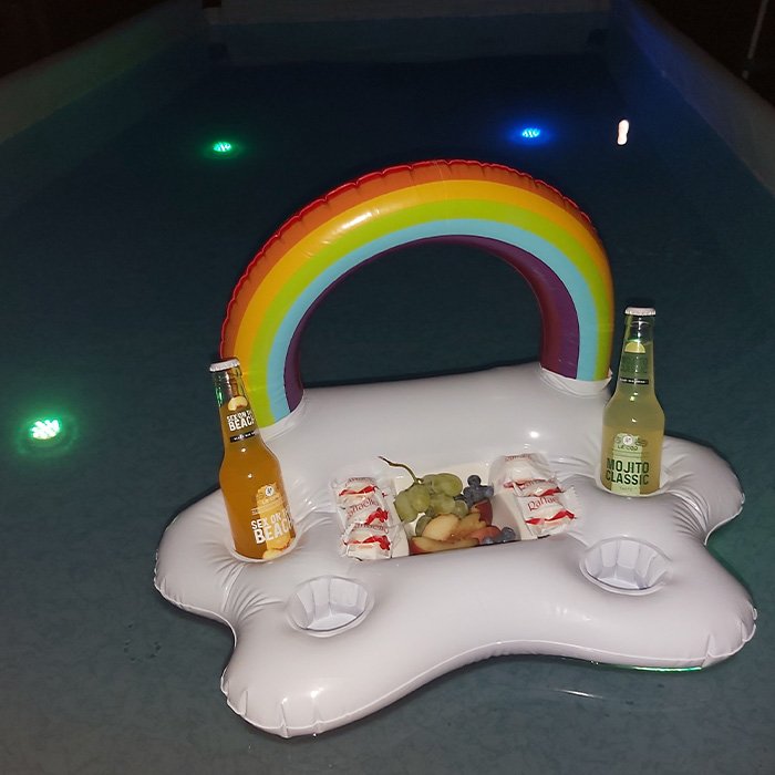 Az asztal gondtalan felfrissülést biztosít a vízben, friss limonádéval, természetes gyümölcslevekkel vagy hűtött sörrel. Így bármikor szabaddá válhat a keze az úszáshoz és a vízben való szórakozáshoz.