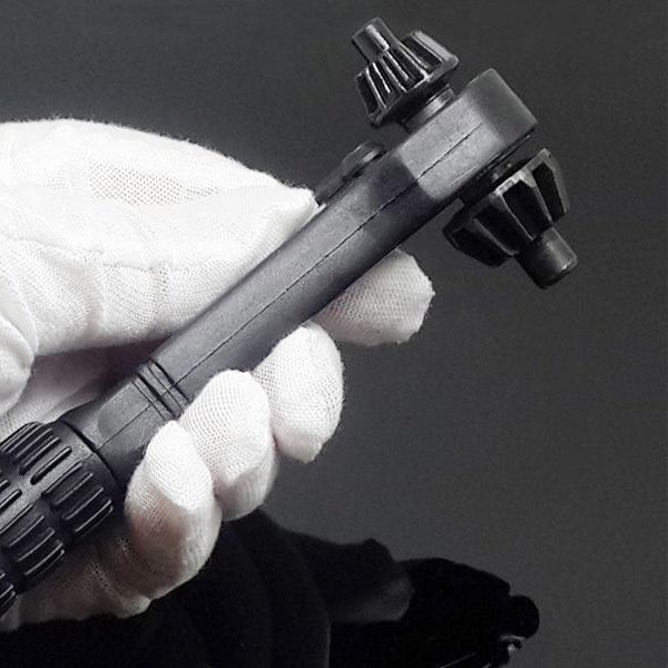 A 2 az 1-ben szorítókulcs mindkét oldalán egy-egy méret található. Az egyik oldalon lévő kis fej kb. 12,7 mm, a másik fej mérete kb. 17,5 mm, így minden típusú elektromos fúróhoz és elektromos szerszámhoz alkalmas.