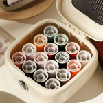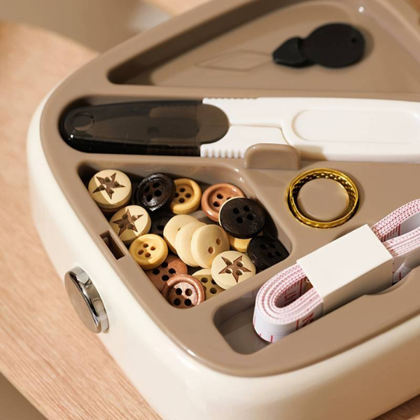 Egy vékony tok mindent rendben és utazásra kész állapotban tart: formázott rekeszek tartják a gombolyagokat és tűket a helyükön, míg egy átlátszó belső lehetővé teszi, hogy egy pillantással megtaláld az elemeket. Dobd be egy táskába, íróasztali fiókba vagy kesztyűtartóba, és tudjad, hogy a javítókészleted mindig elérhető – sokkal jobb, mint a laza eszközök, amelyek összegabalyodnak és elvesznek.