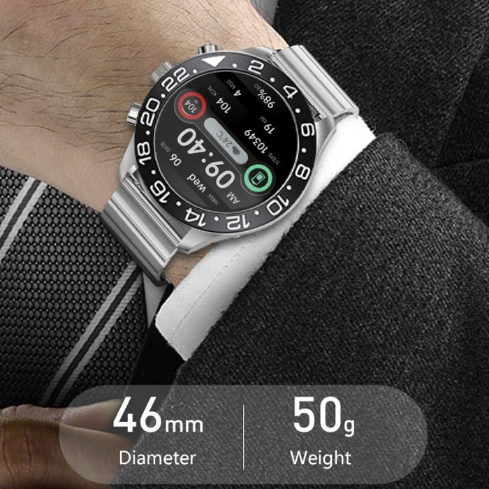 Az okosóra precízen rozsdamentes acélból készült és tiszta, nagy felbontású, érzékeny kijelzőt biztosít, emellett a rozsdamentes acél szíj kényelmes viseletet biztosít. A szíj hosszát testreszabhatja, hogy bármilyen csuklóra illeszkedjen. Az akkumulátor erős és hosszú élettartamot biztosít az óra számára. Támogatja az iOS 10.0 vagy újabb, valamint az Android 7.0 vagy újabb verzióját futtató okostelefonokat.