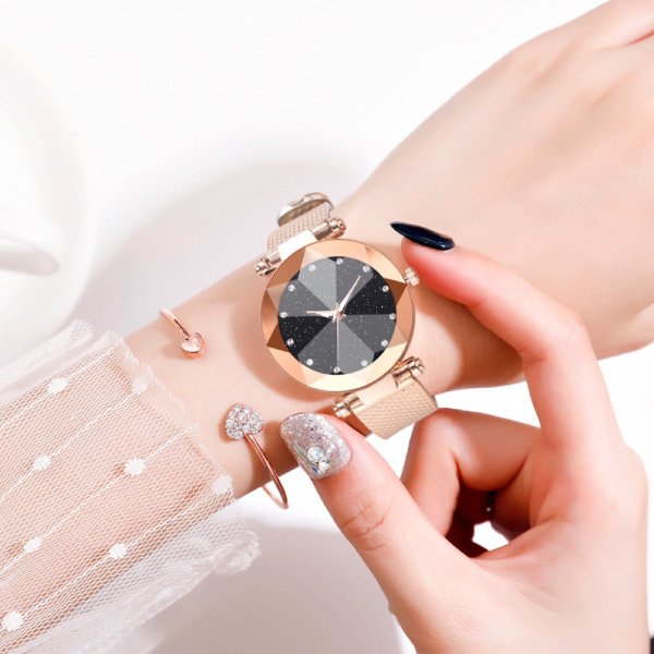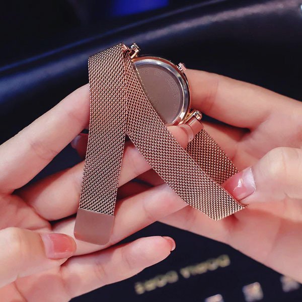 Magnetni sistem za zapiranje paščka omogoča preprosto in praktično uporabo ure. Številčnica, ki ponazarja biserni prah zvezd, je elegantna in romantična