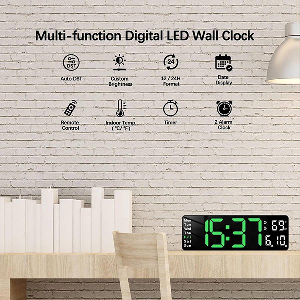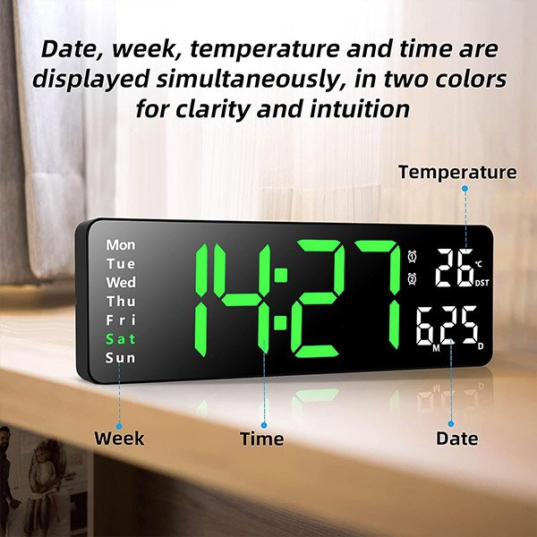 Nagy, fényes LED kijelzőjével az digitális fali óránk biztosítja, hogy az idő könnyen látható legyen a szobában bárhonnan is nézzük, megszüntetve a hunyorítást vagy erőlködést.