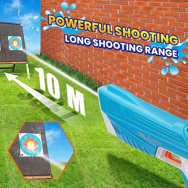 Nem kell többé aggódnod, hogy az epikus csata közepén lemerül az akkumulátor. A vízpisztoly rendelkezik egy töltőképes akkumulátorral, amely hosszan tartó működést biztosít. Emellett tartós kialakítással rendelkezik, amely ellenáll az outdoor játékok terhelésének, ütéseknek és eséseknek.