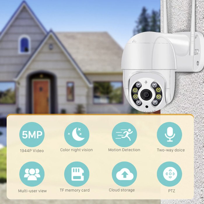 A Wificamera beépített rendszerrel rendelkezik, amely automatikusan észleli a veszélyt. Az intelligens rendszer nem érzékeli a kistestű állatokat, időjárási eseményeket vagy egyéb zavaró tevékenységeket, így a téves riasztások 95%-kal csökkennek, az embereket pedig hatékonyan és gyorsan észleli és veszélyfaktorként jelöli meg. Az automatikus követés az emberek mozgását is figyeli, és figyelmezteti Önt. Otthoni wifin vagy kábelen keresztül csatlakozik, és a legújabb P2P technológia lehetővé teszi, hogy a kamerájáról nézze az élő közvetítést.